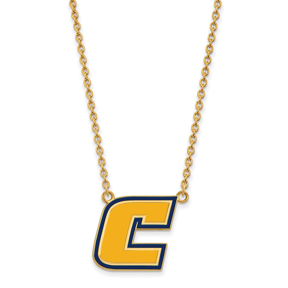 Sterling Silver Gold-plated LogoArt University of Tennessee at Chattanooga Letter C Large Enameled Pendant 18 inch Necklace