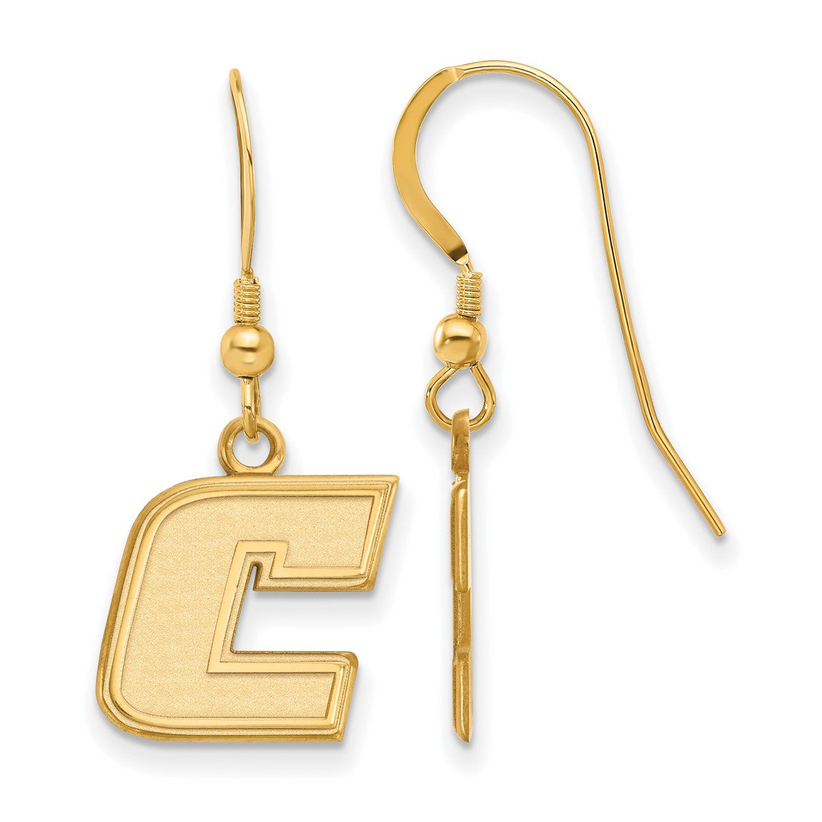 Sterling Silver Gold-plated LogoArt University of Tennessee at Chattanooga Letter C Small Dangle Wire Earrings
