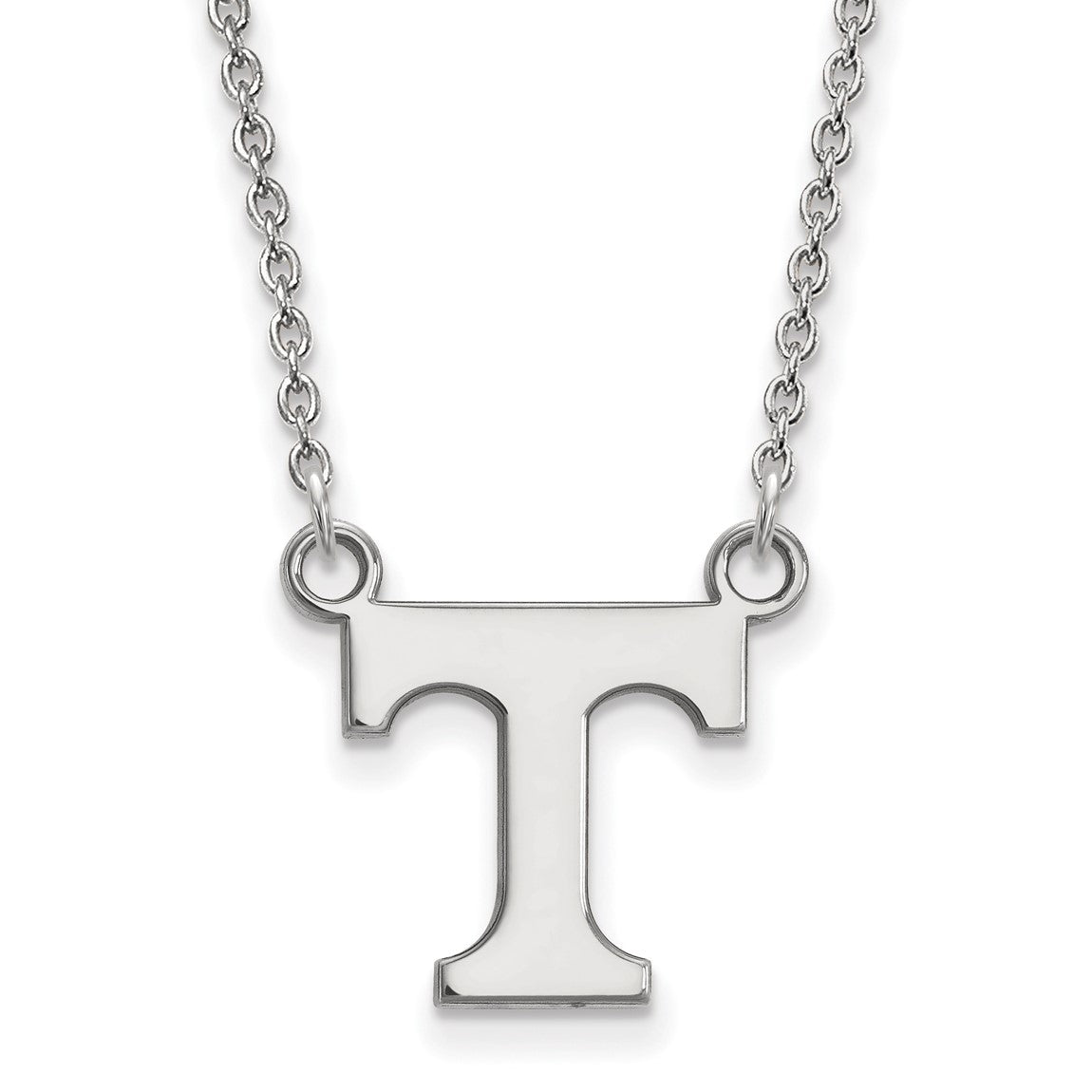 10k White Gold LogoArt University of Tennessee Letter T Small Pendant 18 inch Necklace