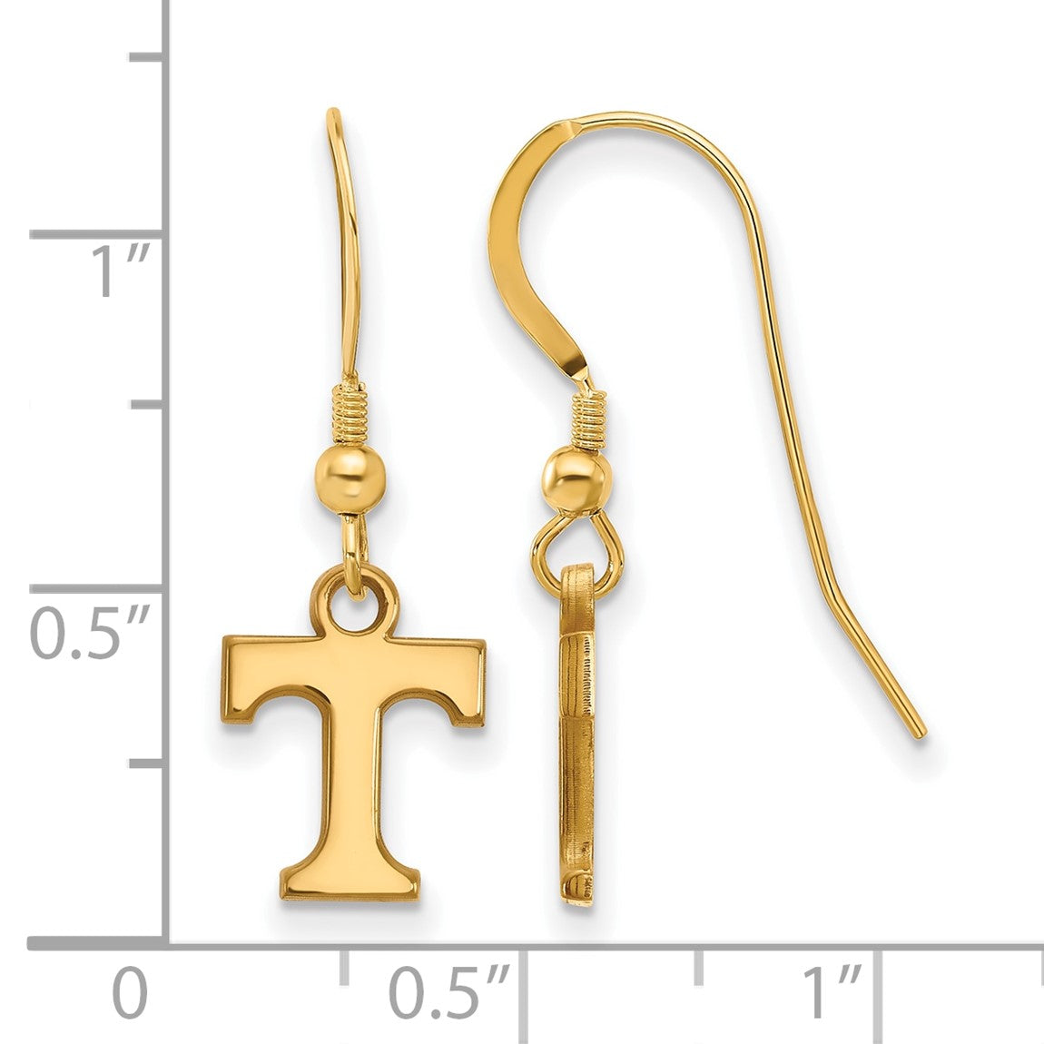Sterling Silver Gold-plated LogoArt University of Tennessee Letter T Extra Small Dangle Wire Earrings