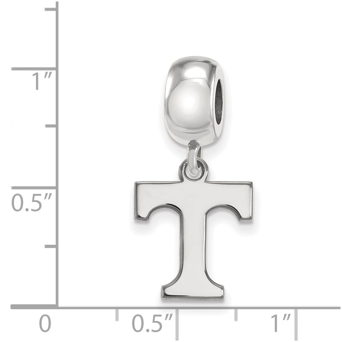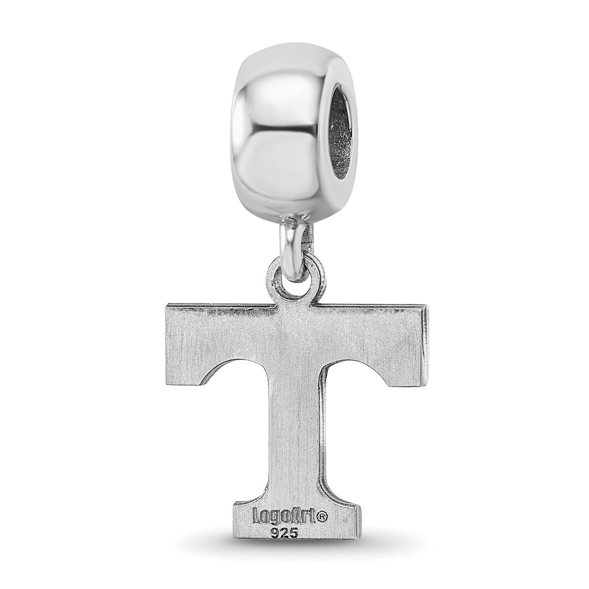 Sterling Silver Rhodium-plated LogoArt University of Tennessee Letter T Small Dangle Bead Charm