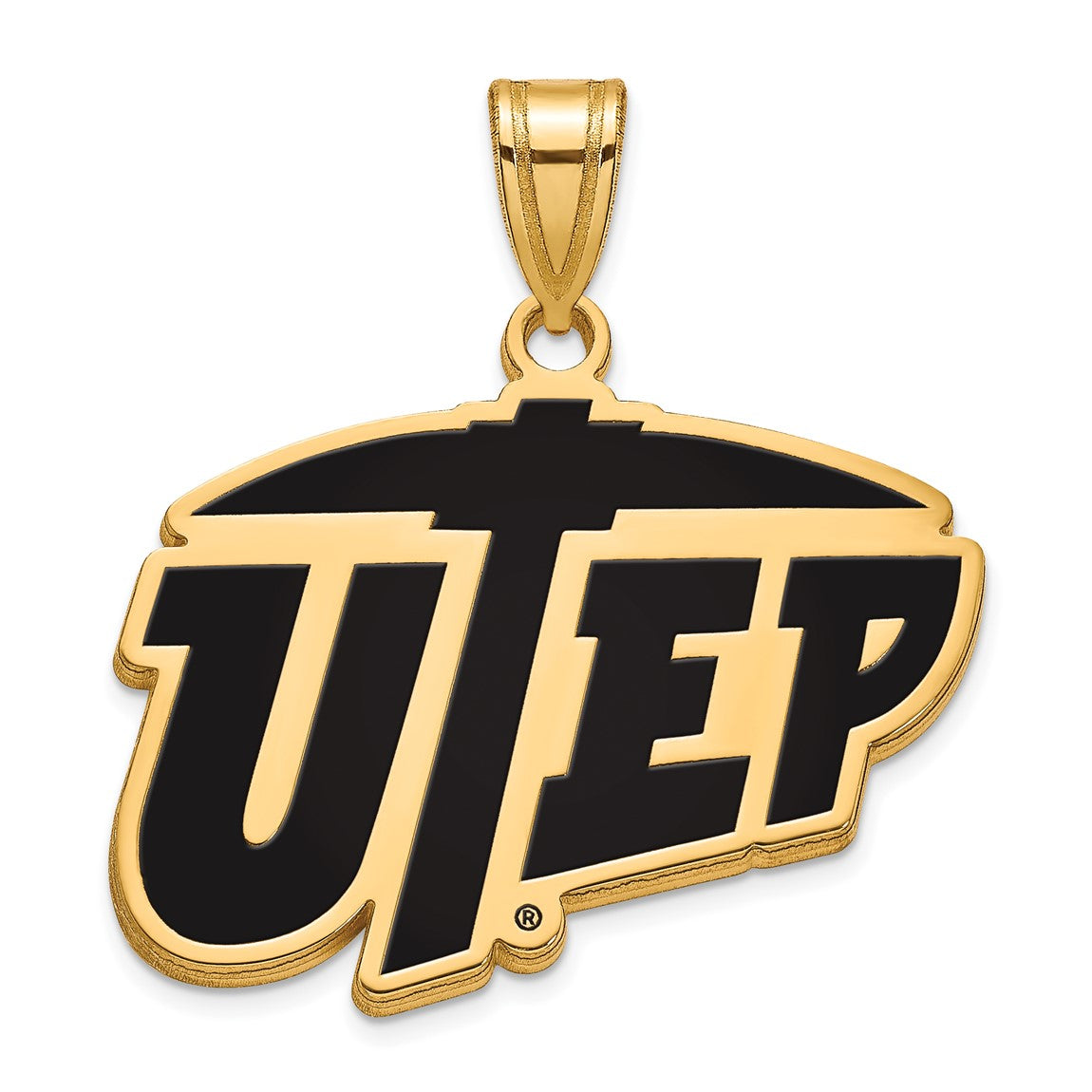 Sterling Silver Gold-plated LogoArt University of Texas at El Paso Large Enameled Pendant