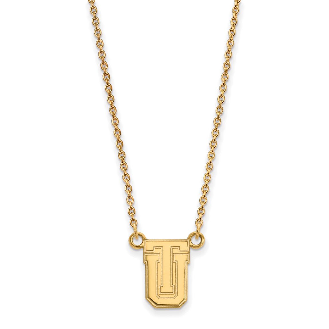 Sterling Silver Gold-plated LogoArt University of Tulsa T-U Small Pendant 18 inch Necklace