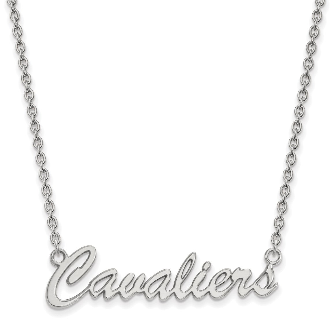 Sterling Silver Rhodium-plated LogoArt University of Virginia Cavaliers Script Medium Pendant 18 inch Necklace