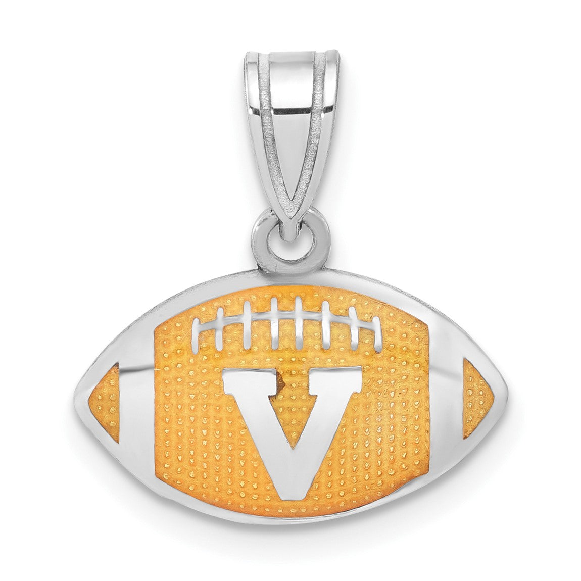 Sterling Silver Rhodium-plated LogoArt University of Virginia Enameled Football Pendant