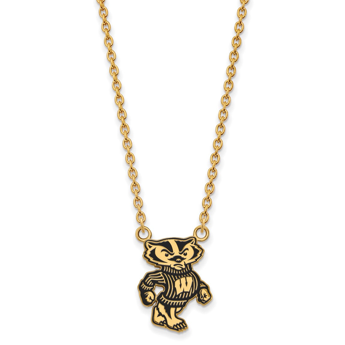 Sterling Silver Gold-plated LogoArt University of Wisconsin Badger Large Enameled Pendant 18 inch Necklace