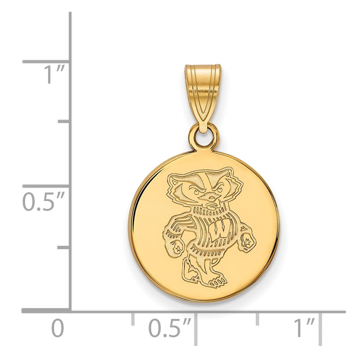 Sterling Silver Gold-plated LogoArt University of Wisconsin Badger Medium Disc Pendant