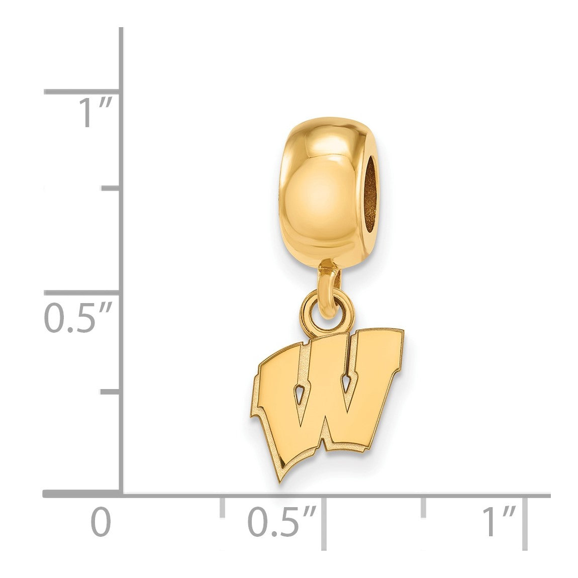 Sterling Silver Gold-plated LogoArt University of Wisconsin Letter W Extra Small Dangle Bead Charm