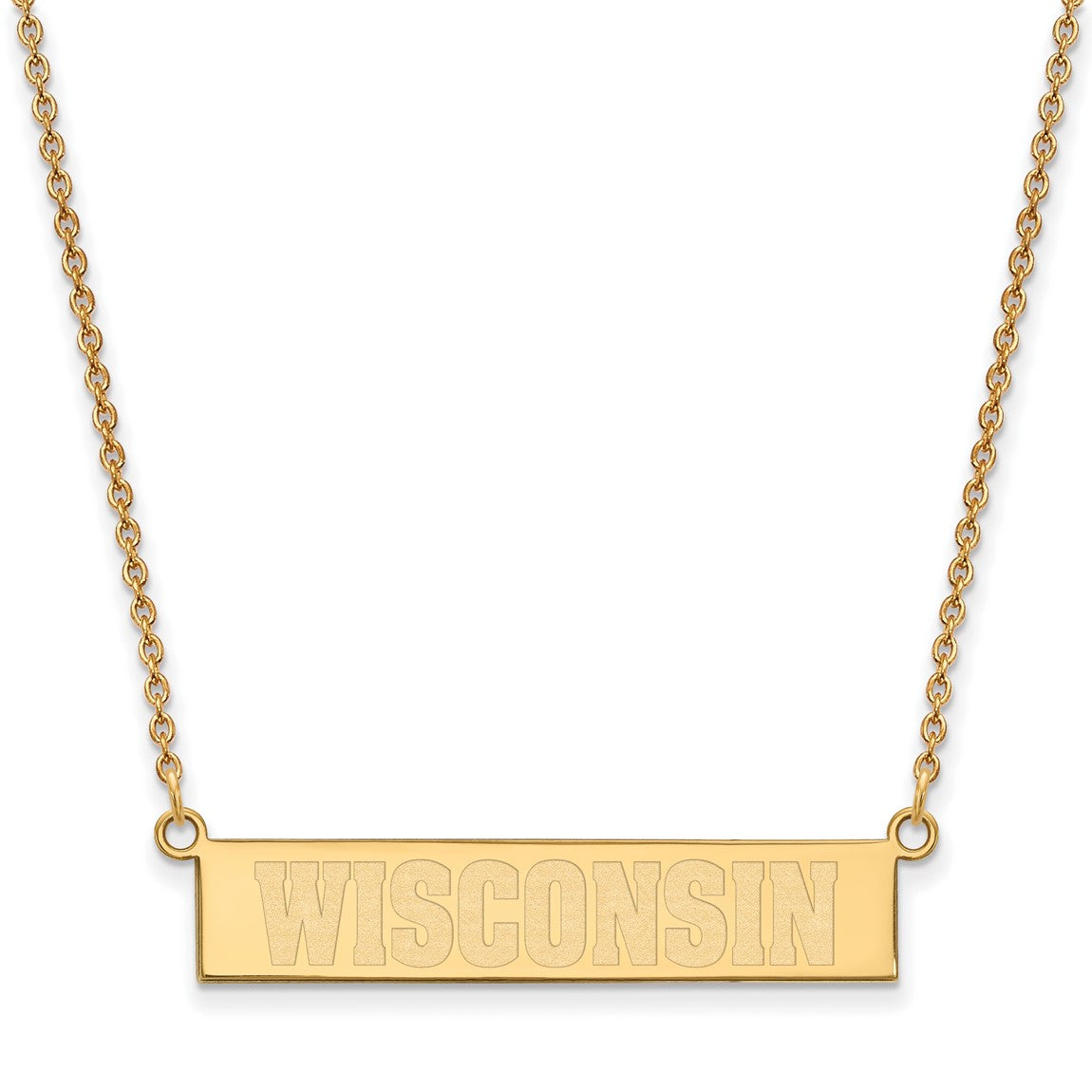 Sterling Silver Gold-plated LogoArt University of Wisconsin Small Bar 18 inch Necklace