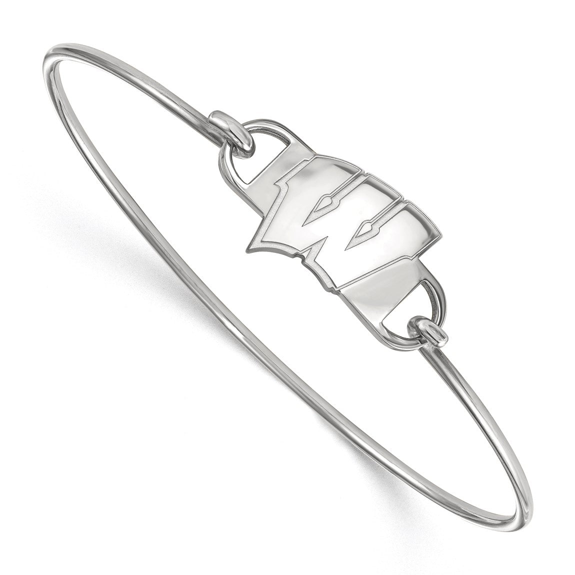 Sterling Silver Rhodium-plated LogoArt University of Wisconsin Letter W Small Center 7 inch Wire Bangle Bracelet