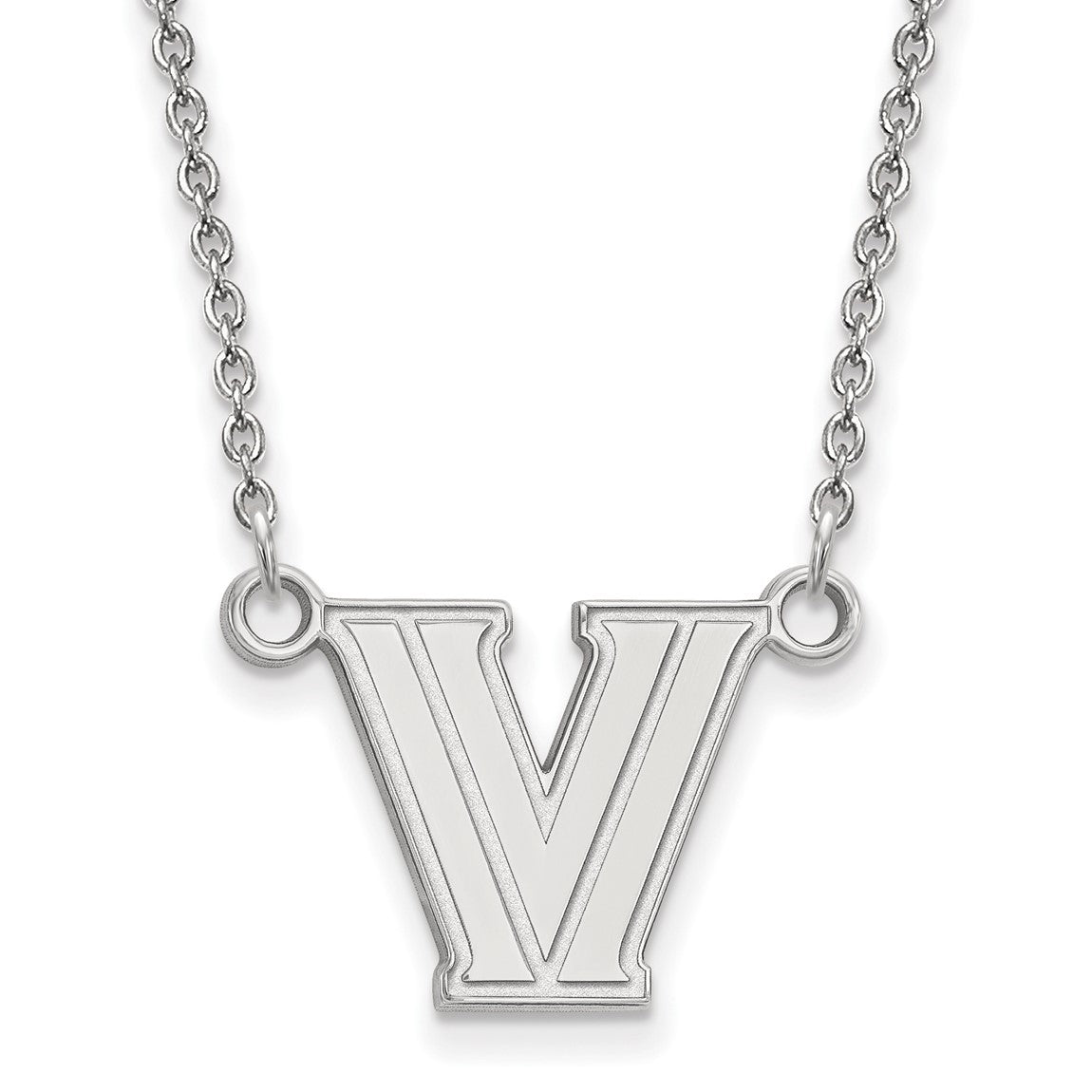 10k White Gold LogoArt Villanova University Letter V Small Pendant 18 inch Necklace