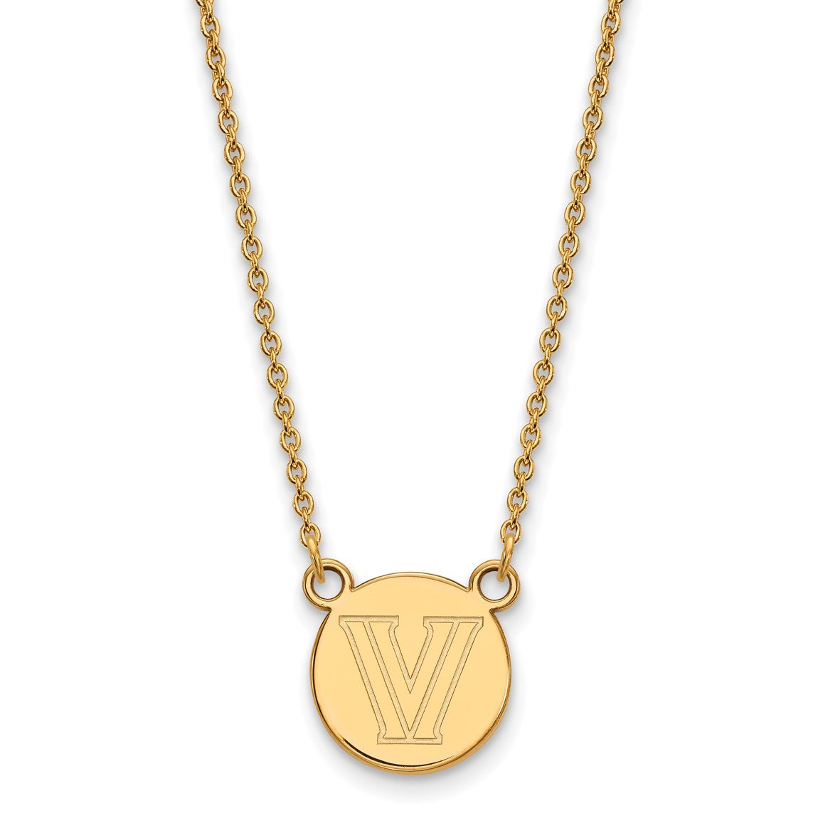 Sterling Silver Gold-plated LogoArt Villanova University Letter V Small Disc 18 inch Necklace