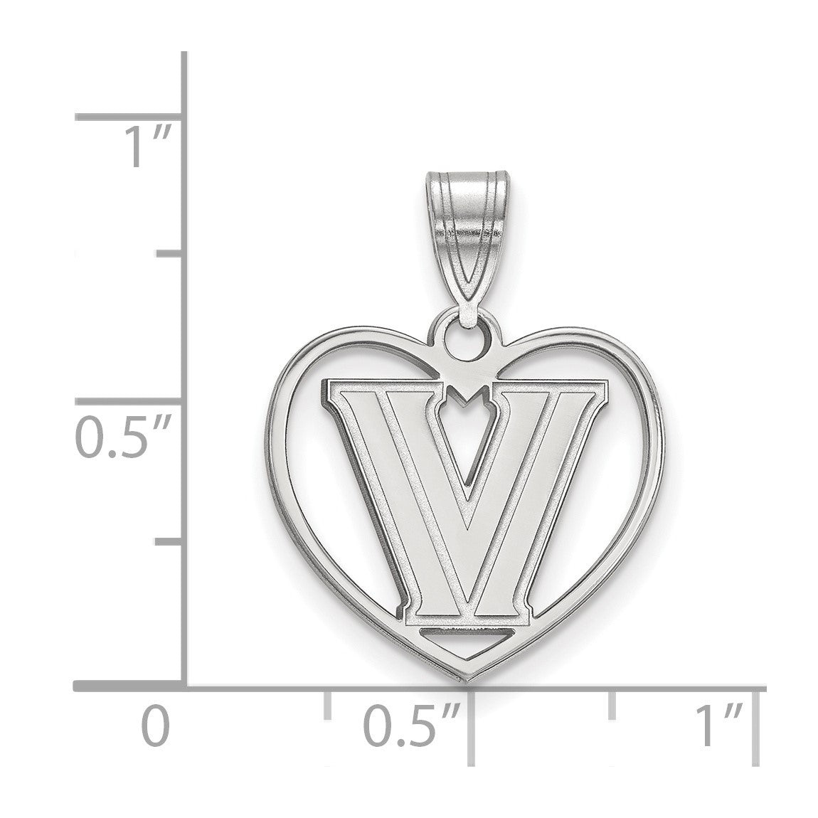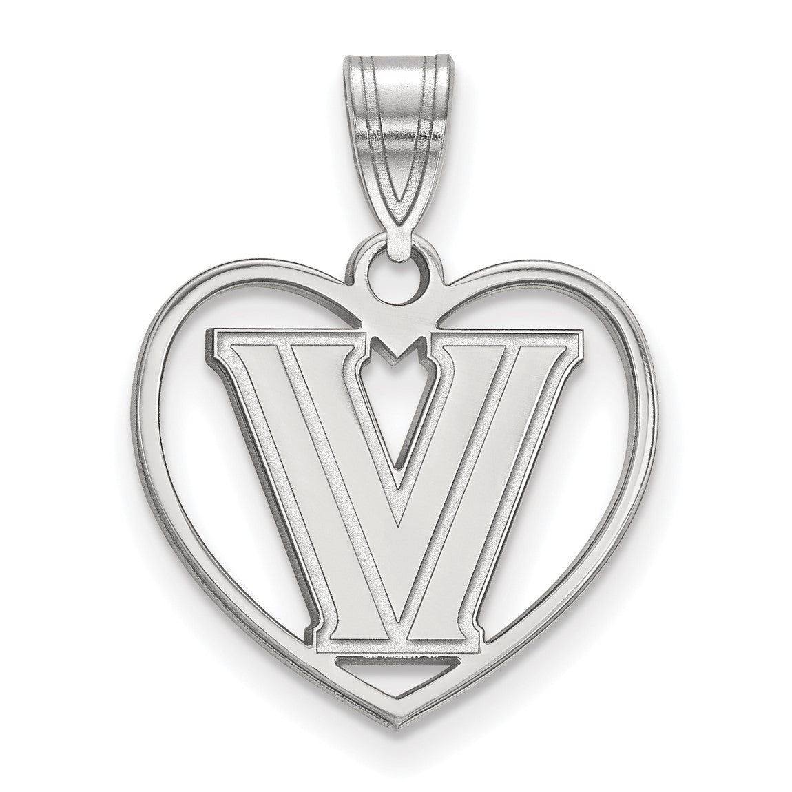 Sterling Silver Rhodium-plated LogoArt Villanova University Letter V Heart Pendant