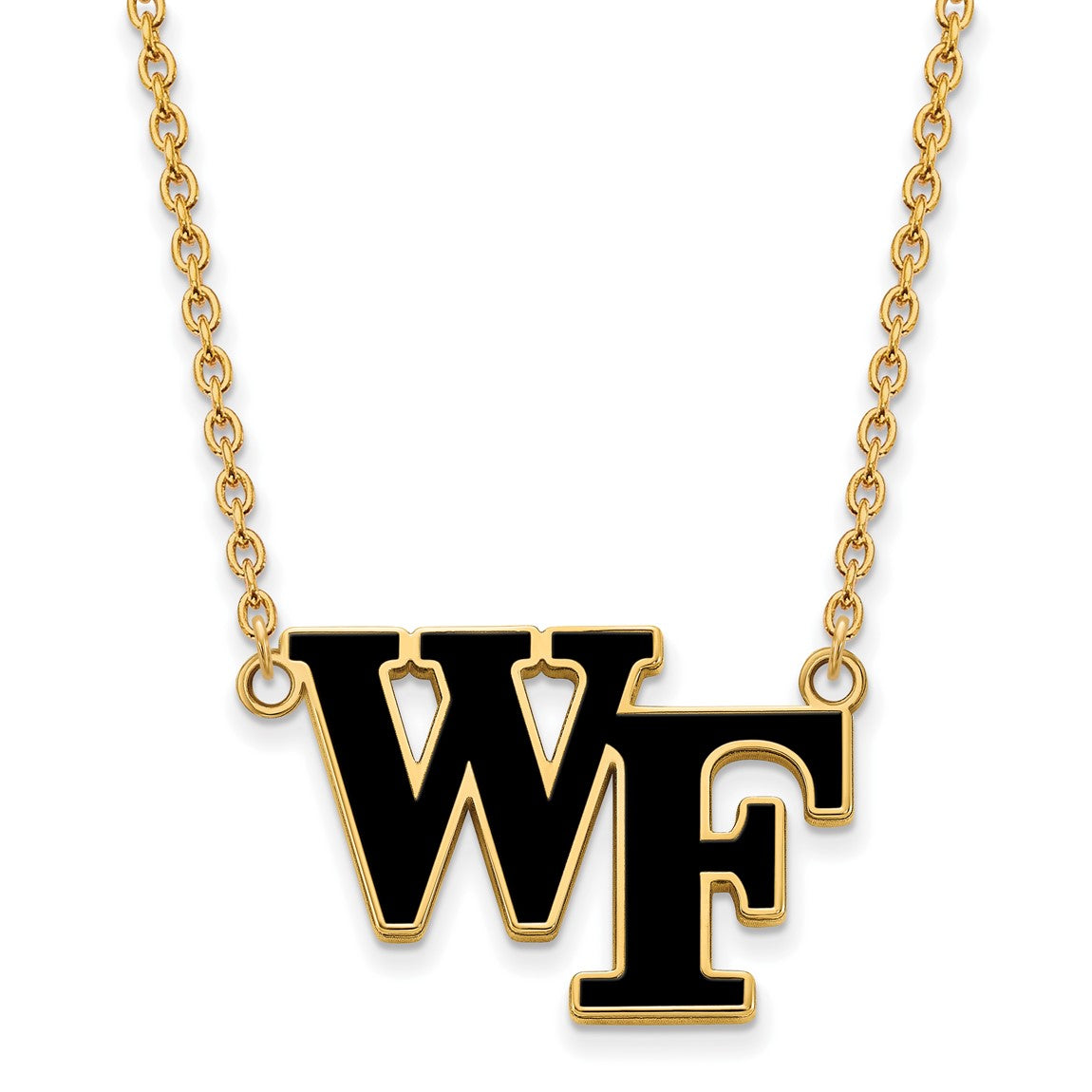Sterling Silver Gold-plated LogoArt Wake Forest University W-F Large Enameled Pendant 18 inch Necklace