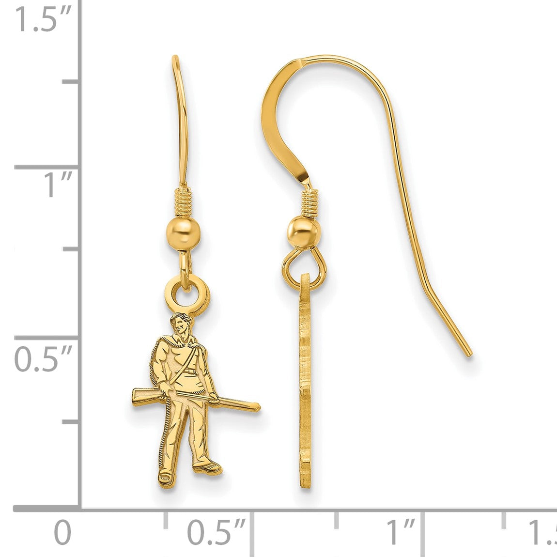 Sterling Silver Gold-plated LogoArt West Virginia University Mountaineer Small Dangle Wire Earrings