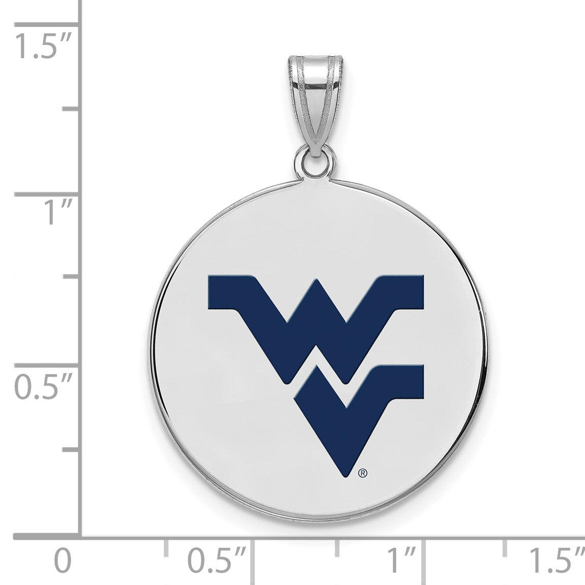 Sterling Silver Rhodium-plated LogoArt West Virginia University W-V Large Enameled Disc Pendant