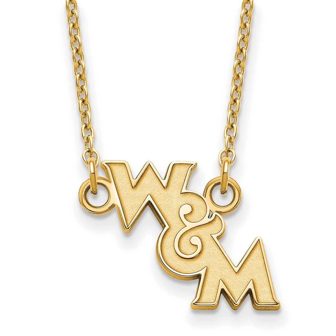 Sterling Silver Gold-plated LogoArt College of William and Mary Small Pendant 18 inch Necklace