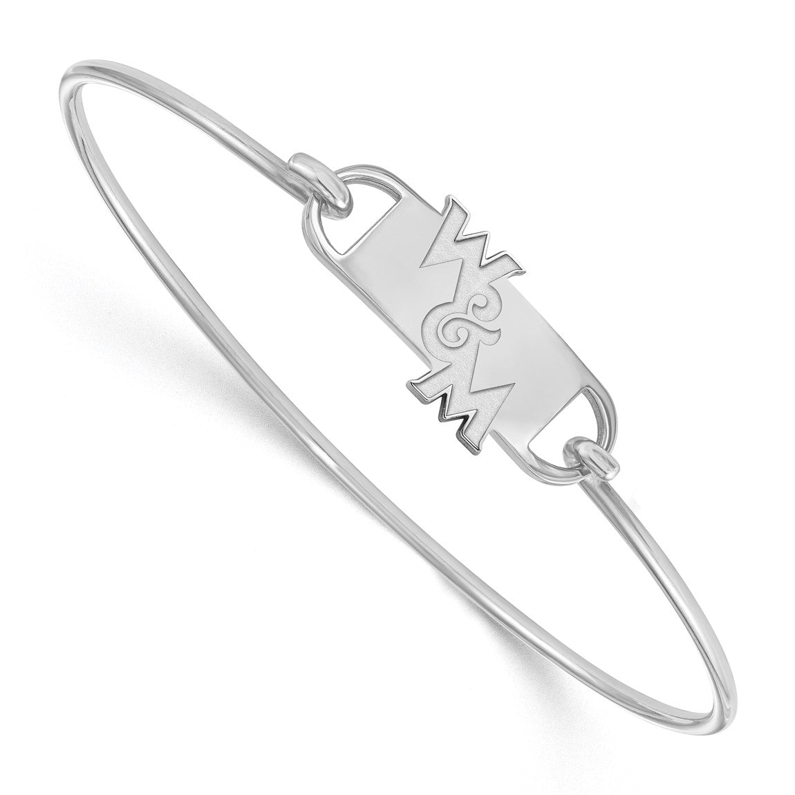 Sterling Silver Rhodium-plated LogoArt College of William and Mary Small Center 7 inch Wire Bangle Bracelet