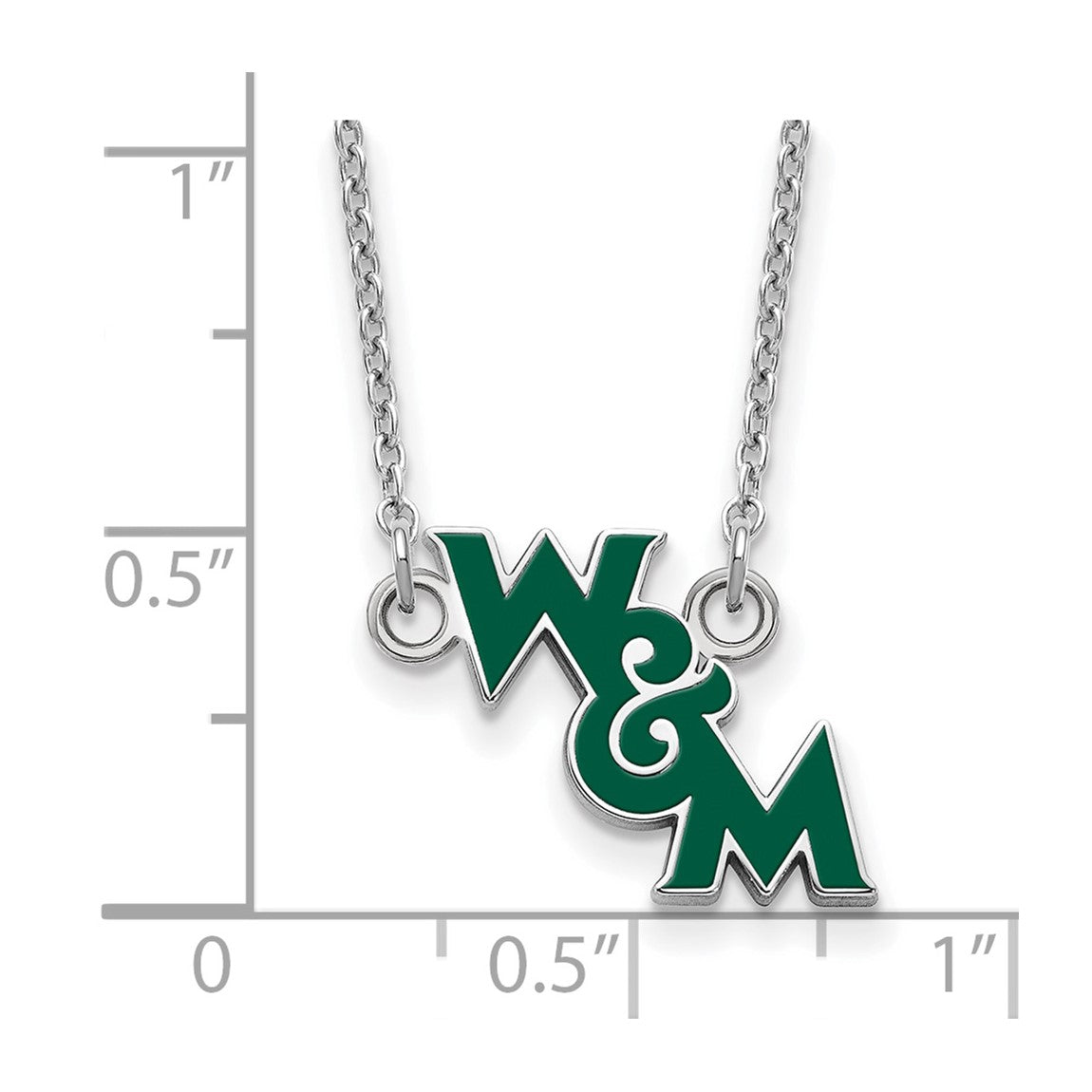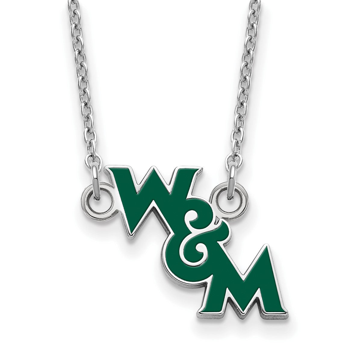 Sterling Silver Rhodium-plated LogoArt College of William and Mary Small Enameled Pendant 18 inch Necklace
