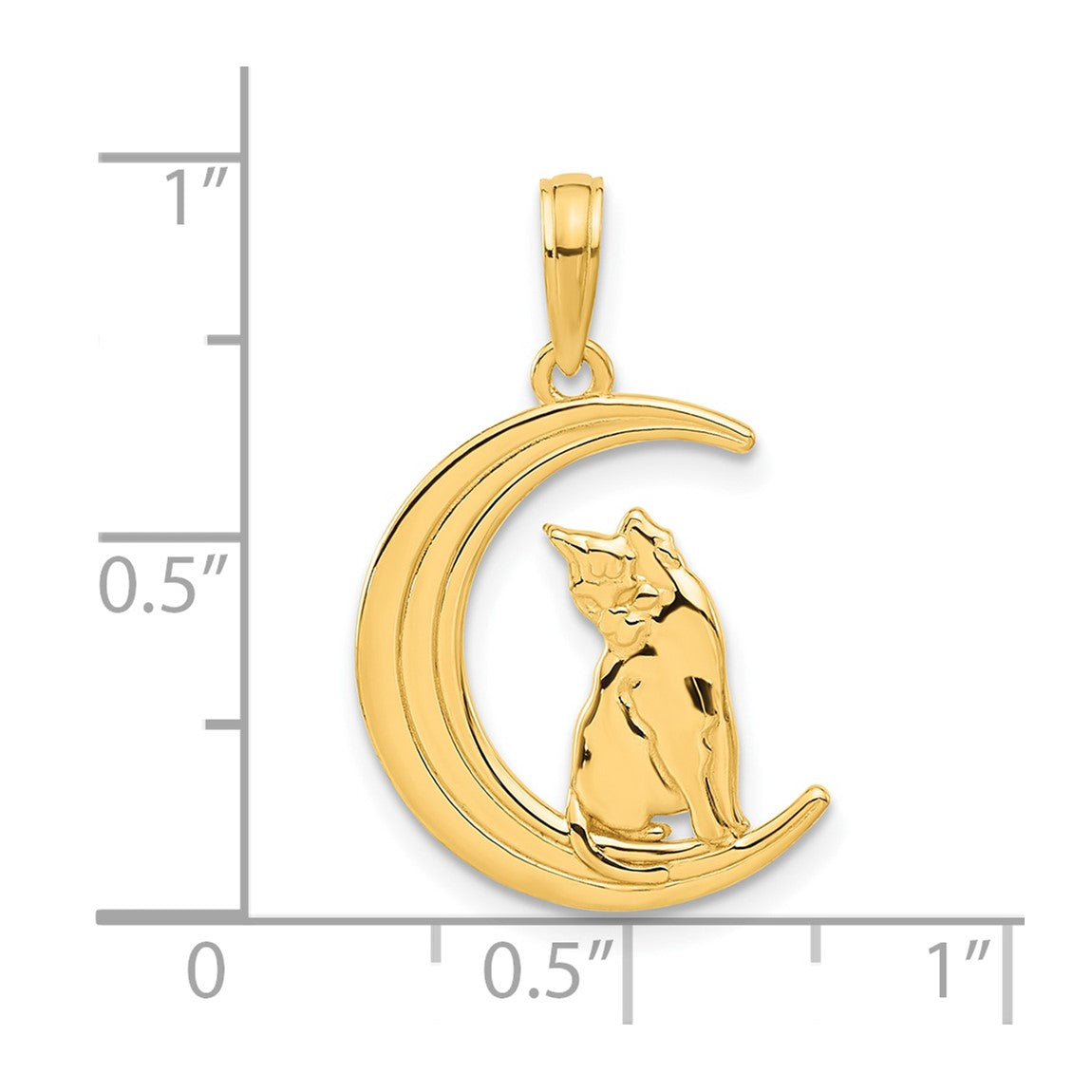 14K Yellow Gold Polished Cat Sittin On Moon Pendant