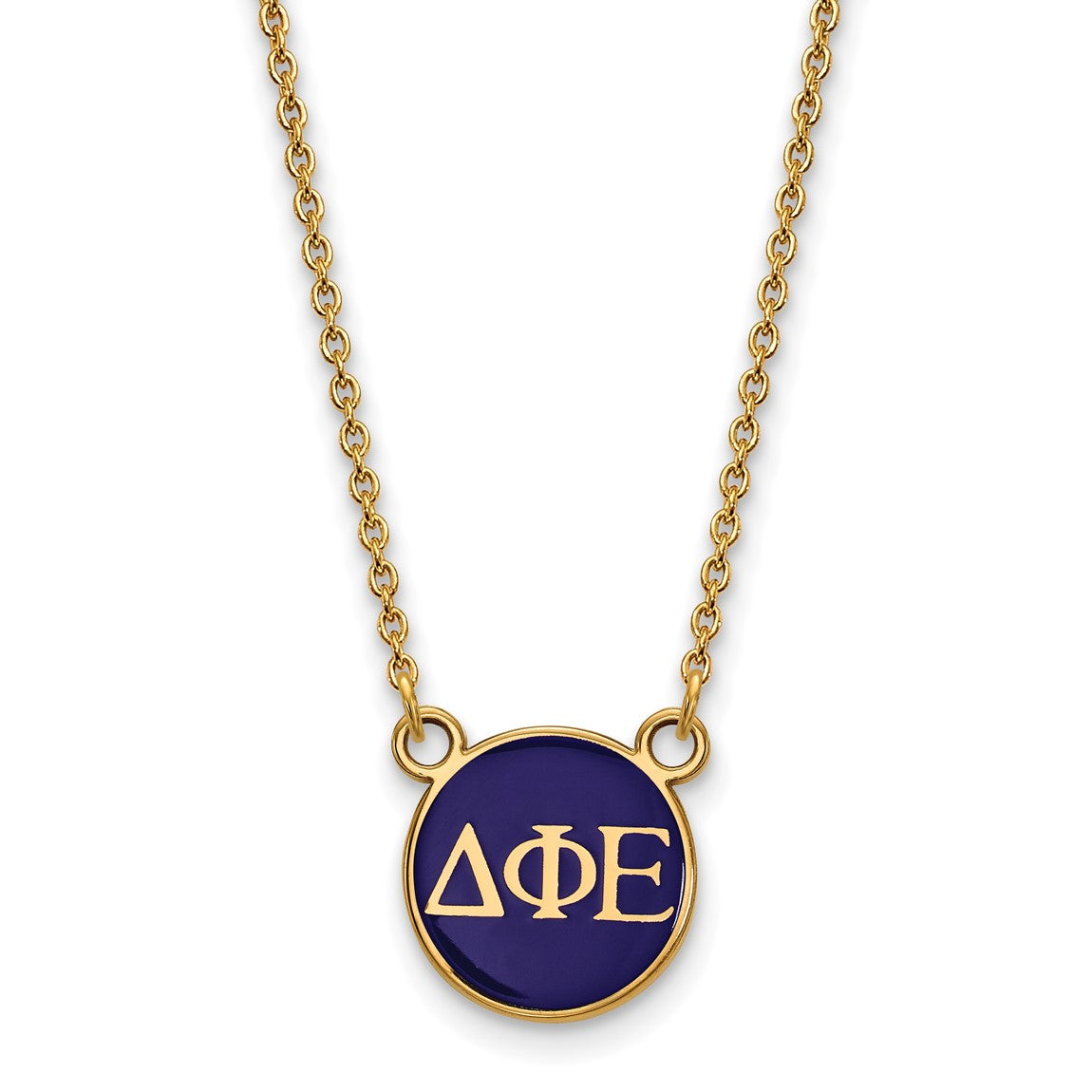Sterling Silver Gold-plated LogoArt Delta Phi Epsilon Sorority Greek Letters Small Color Enamel Pendant 18 inch Necklace GP029DPH-18