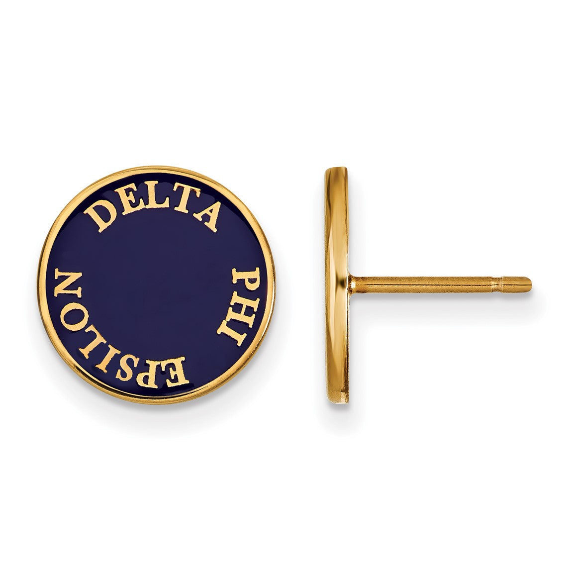 Sterling Silver Gold-plated LogoArt Delta Phi Epsilon Sorority Text Color Enamel Post Earrings GP019DPH