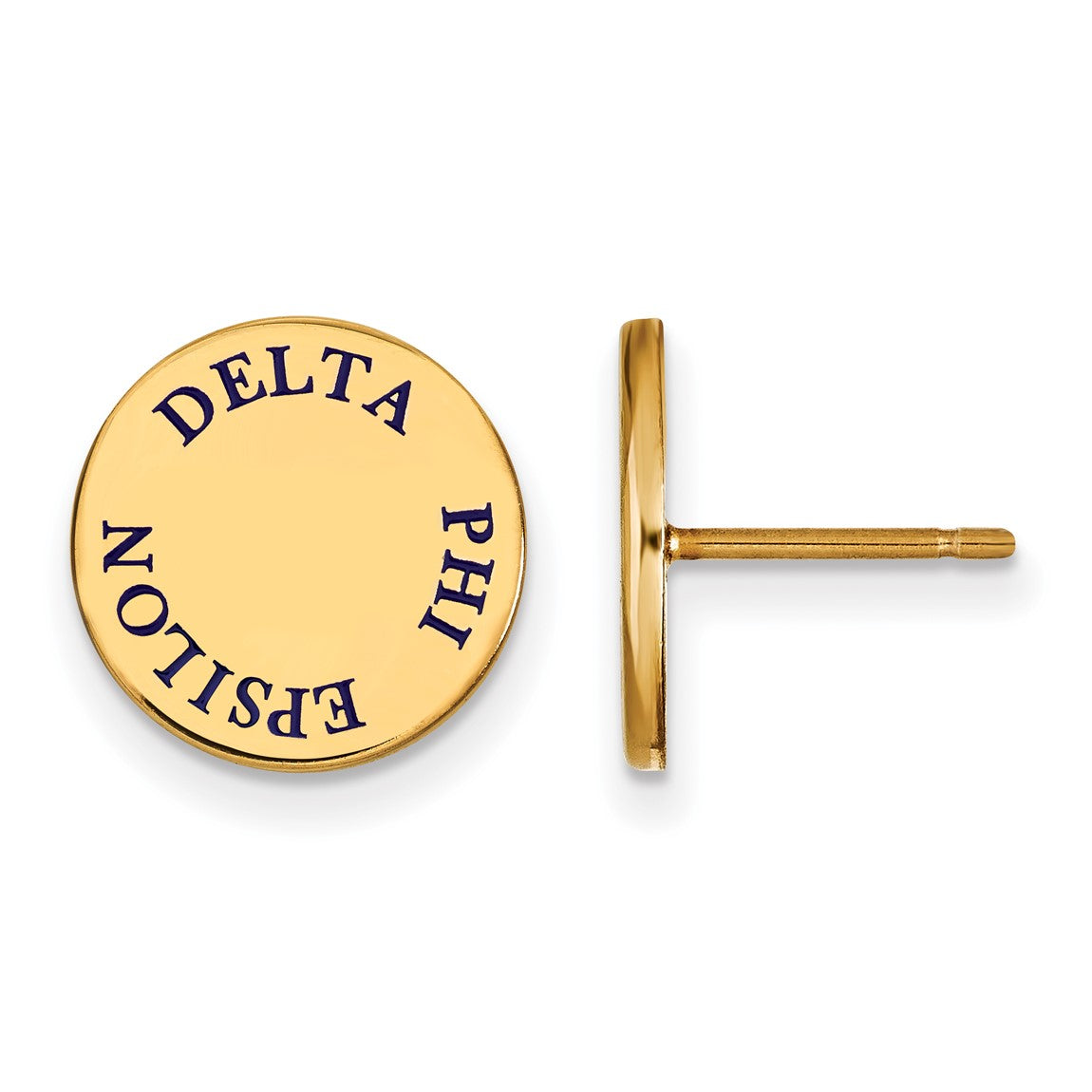 Sterling Silver Gold-plated LogoArt Delta Phi Epsilon Sorority Text Color Enamel Post Earrings GP020DPH