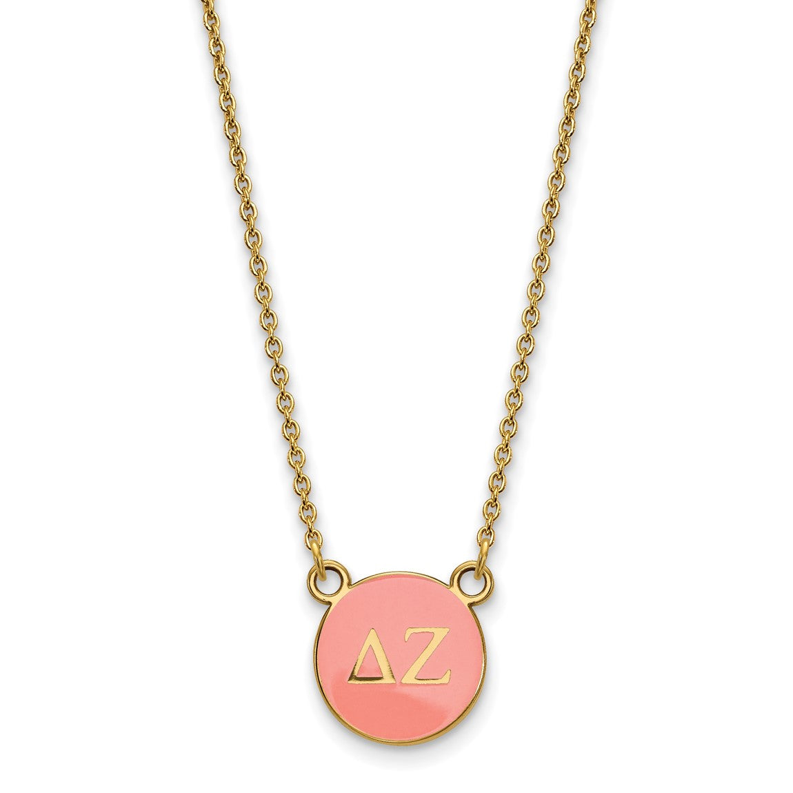 Sterling Silver Gold-plated LogoArt Delta Zeta Sorority Greek Letters Small Color Enamel Pendant 18 inch Necklace GP029DZ-18
