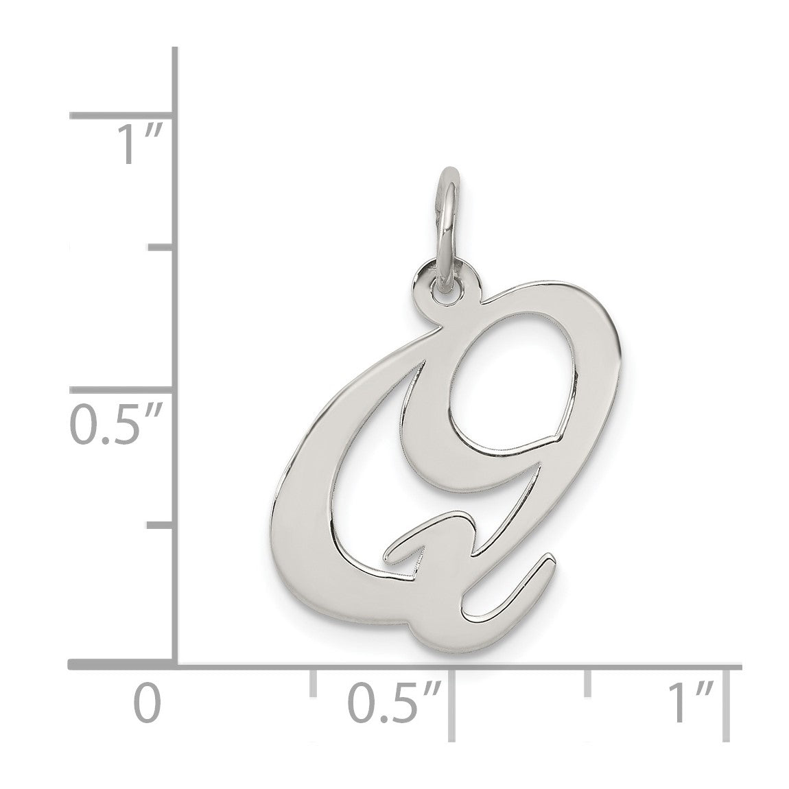 Sterling Silver Rhodium-plated Large Fancy Script Initial Q Charm