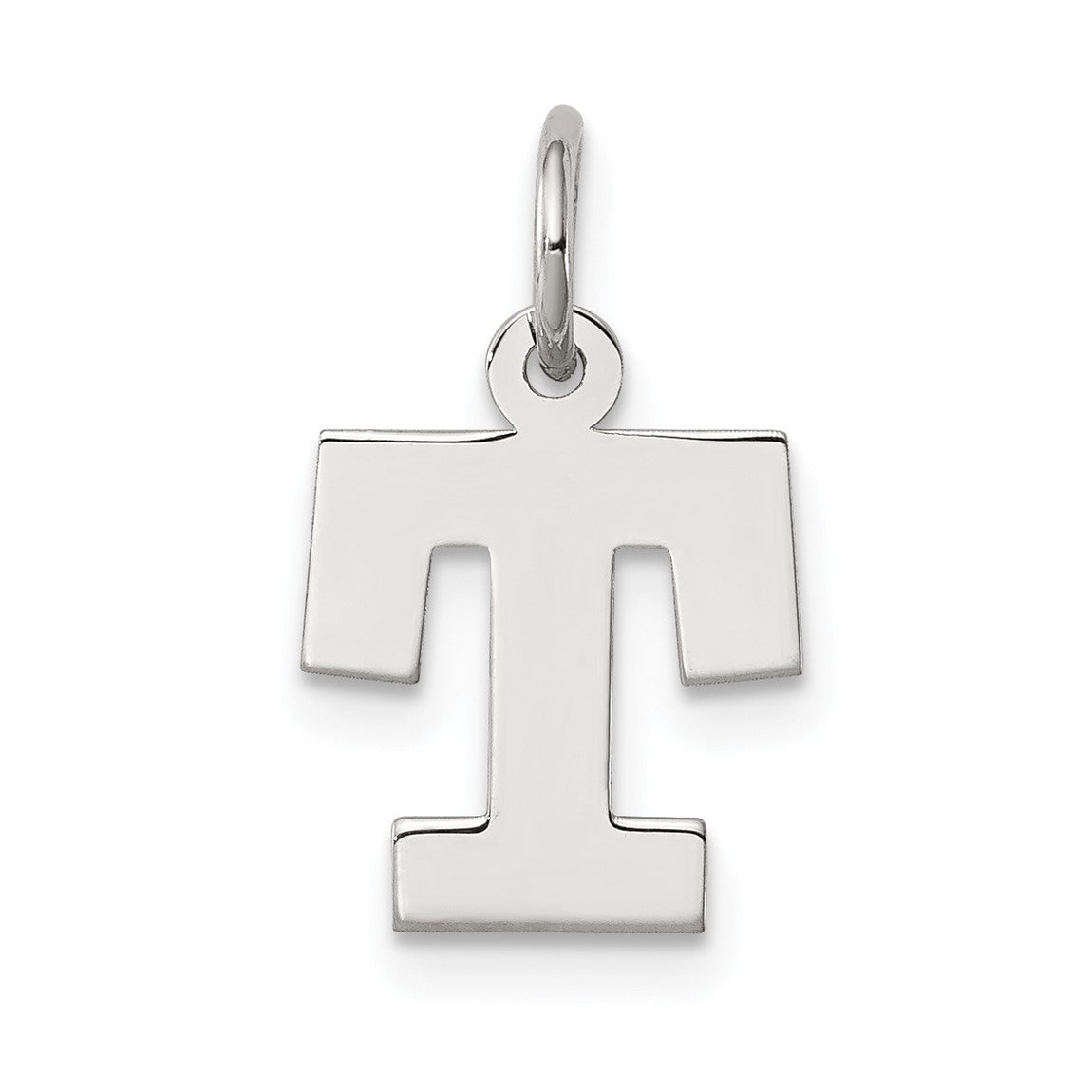 Sterling Silver Rhodium-plated Small Block Initial T Charm