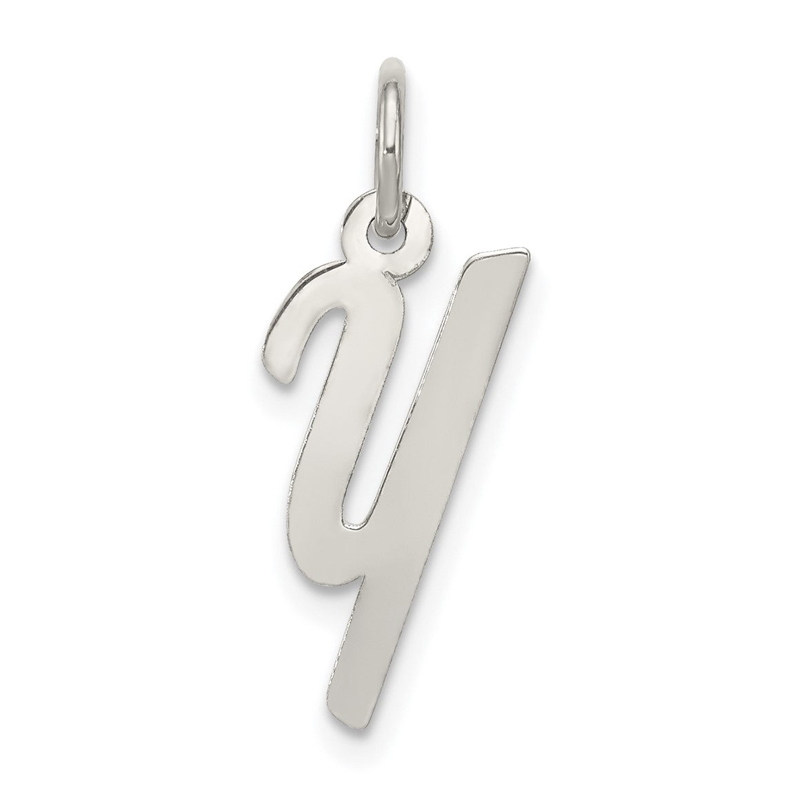 Sterling Silver Rhodium-plated Small Script Initial Y Charm